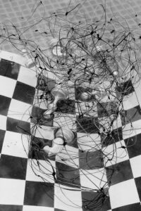 We never know what is beyond our minds. What are the boundaries of understanding of the reality? Or maybe it is the fiction of our imagination? As Garry Kasparov once said “chess are the torment of reason”. There are so many options of development of the events in the world and it can be very well traced on a chessboard. After three moves on each side, more than nine million possible positions appear. In the world of the subconscious the boundaries are erased, you become the part of something unconscious and uncontrollable, where the player can suddenly become a figure and his path will be a square on a chessboard.