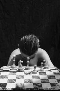 championships reflect on him as long uncontrolled conversations while sleeping. Sometimes you can hear the flow of the chess game, and sometimes it is an internal cry of a losing player. There are also absurd tories through a dream, you can only guess the plot or try to imagine what really happens on a subconscious level through elusive dreams. This illusion is difficult to describe in words, so you can only try to show it through the lens.
